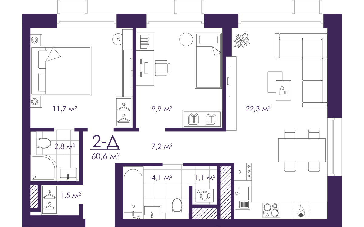 * Данная планировка является информационной. Актуальную площадь на текущую дату необходимо запросить в отделе продаж.