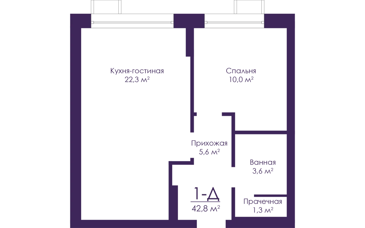 1-комнатная  42.8 м2