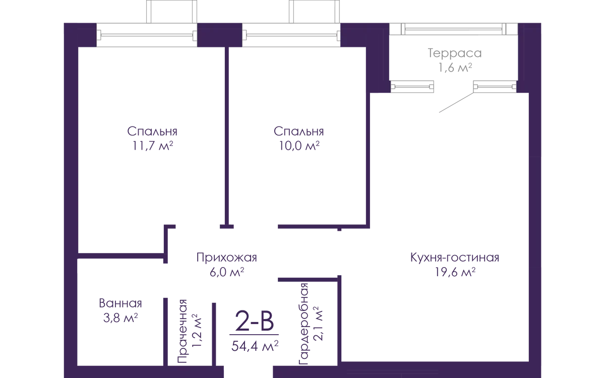2-комнатная  56 м2