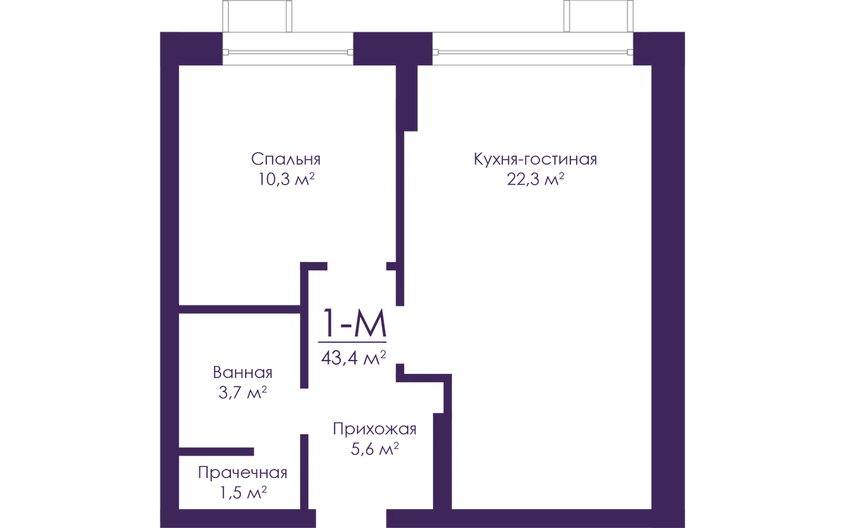 1-комнатная  43.4 м2