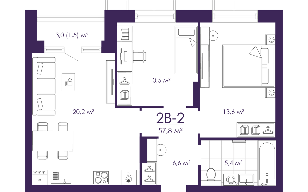 2-комнатная  57.77 м2