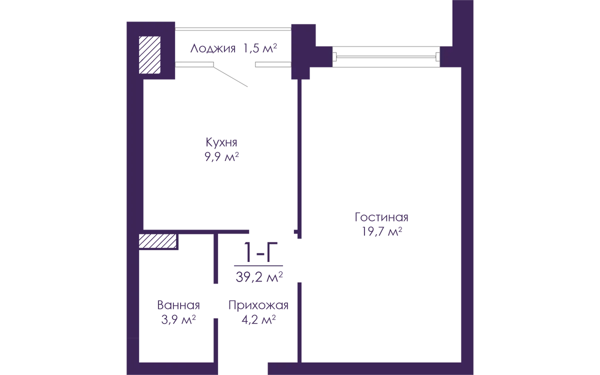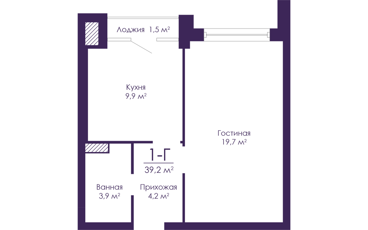 1-комнатная  37.9 м2